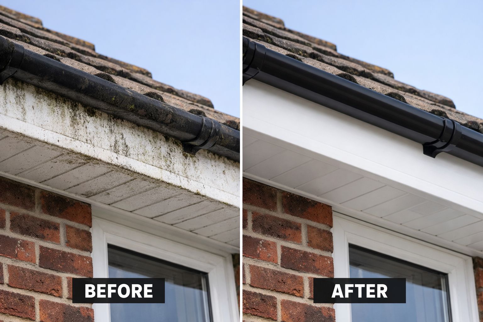 For most properties, fascia and soffit cleaning is recommended every 1–2 years, depending on location and exposure to the elements. Homes near trees, busy roads, or areas prone to damp conditions may require more frequent cleaning due to faster algae and dirt build-up.